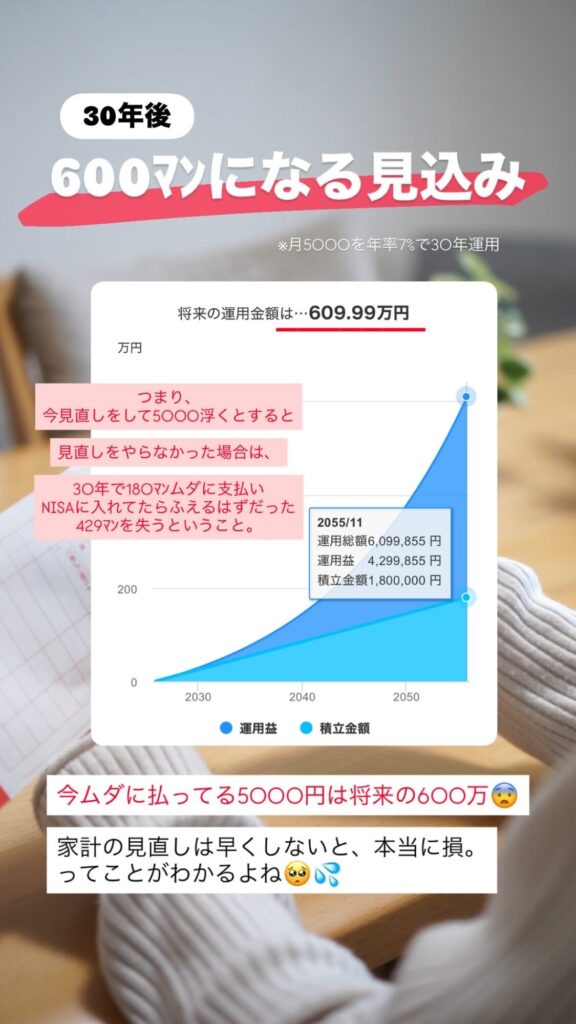 たった5000円が将来の600万円と思うと5000円の威力がとんでもないことがわかるよね?