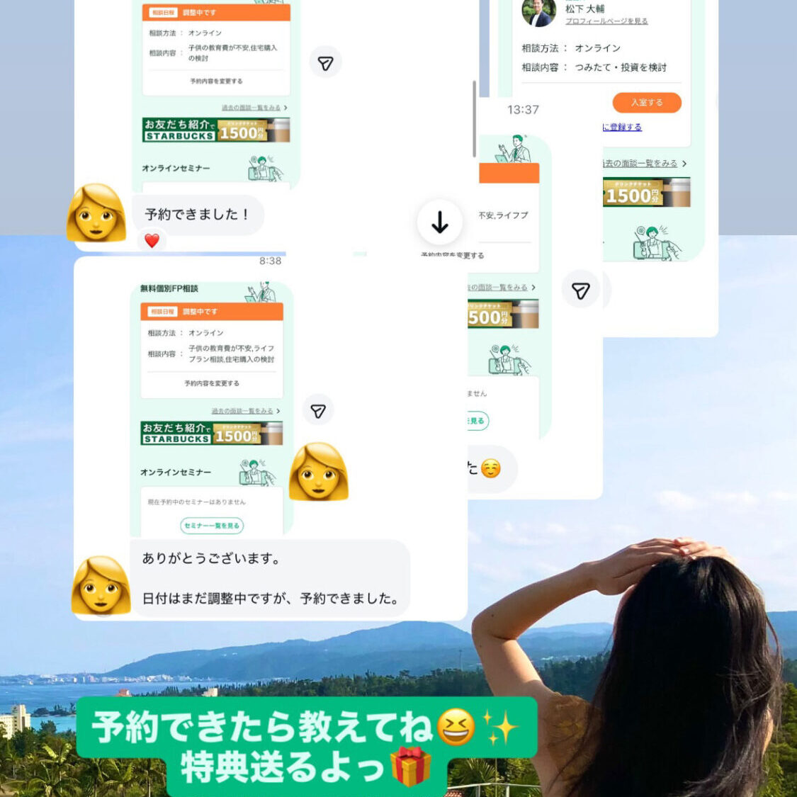 相談予約完了のスクショをかなえにDMする💌